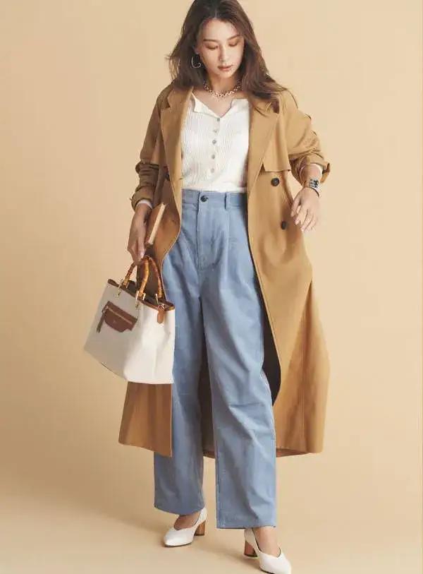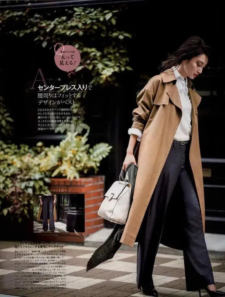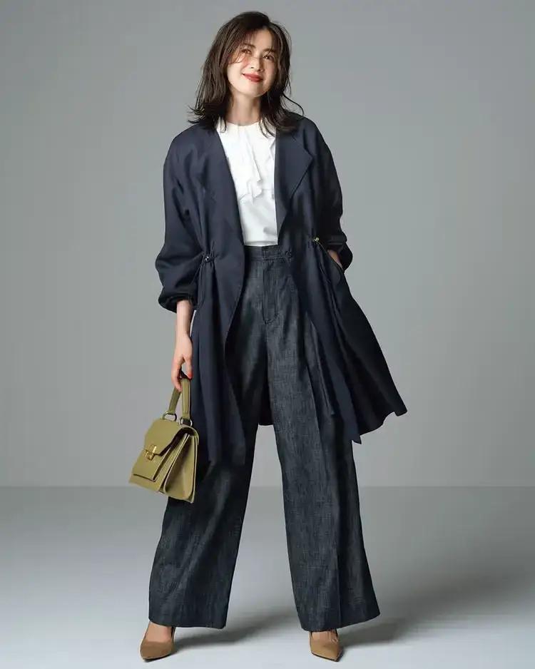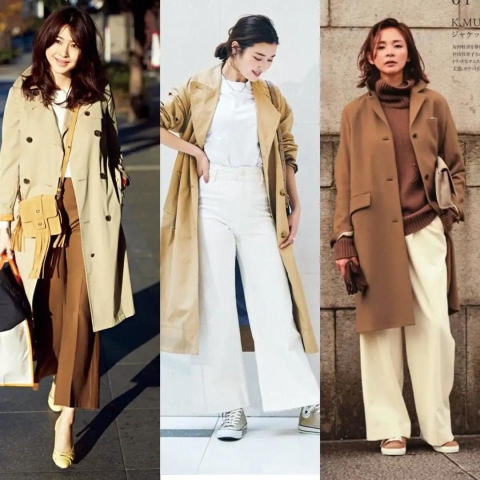 还可以选择最经典的卡其色浅口高跟单鞋来搭配上黑色的阔腿裤,加上藏蓝色的风衣,内搭白色的衬衫,你还真别说,下面的这1套穿衣打扮确实呈现出不一样的成熟和魅力,非常符合奔三奔四的中年女性,甚至是职场女白领选择这样的搭配会更加的大气。